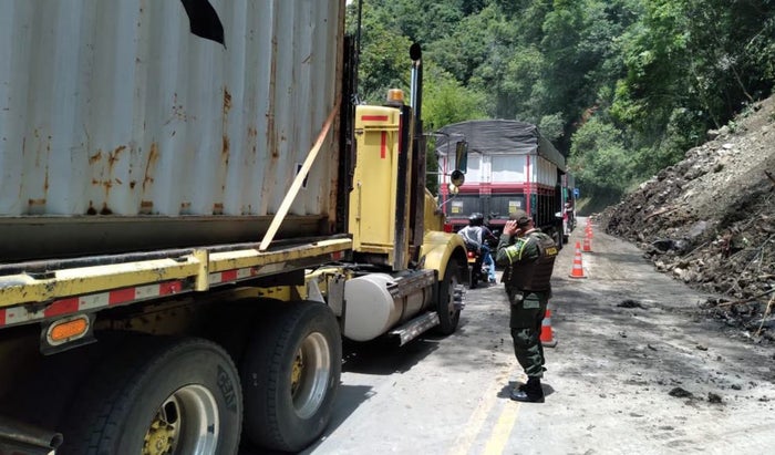 “La Policía Nacional habilita paso a un carril en intervalos de 20 minutos en cada sentido (Ibagué - Cajamarca y viceversa) a la altura del Pr 69+0900 sector Pericos, donde ocurrió deslizamiento por efecto del invierno. Personal y maquinaria continúa removiendo material”, informó la concesionaria a través de Twitter.