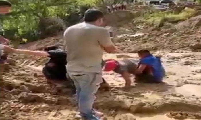Con la ayuda de la comunidad lograron sacar a la persona del fuerte deslizamiento