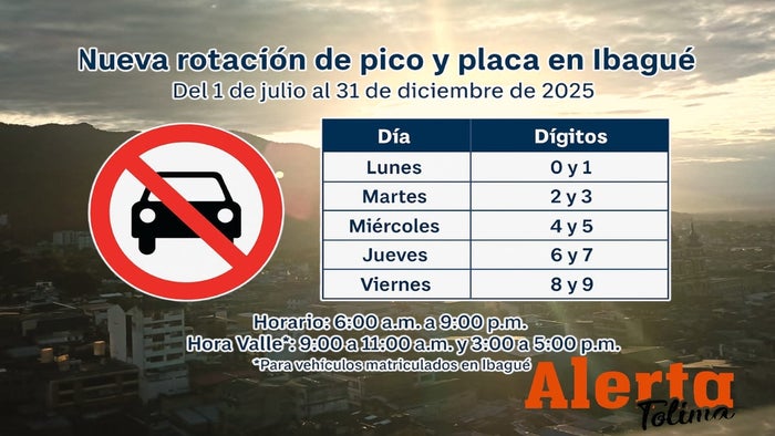 Uno de los beneficios que seguirá vigente es el conocido como Hora Valle, un lapso de tiempo habilitado exclusivamente para vehículos con placas registradas en Ibagué. Durante sus días de restricción, estos automotores podrán circular en dos franjas específicas: